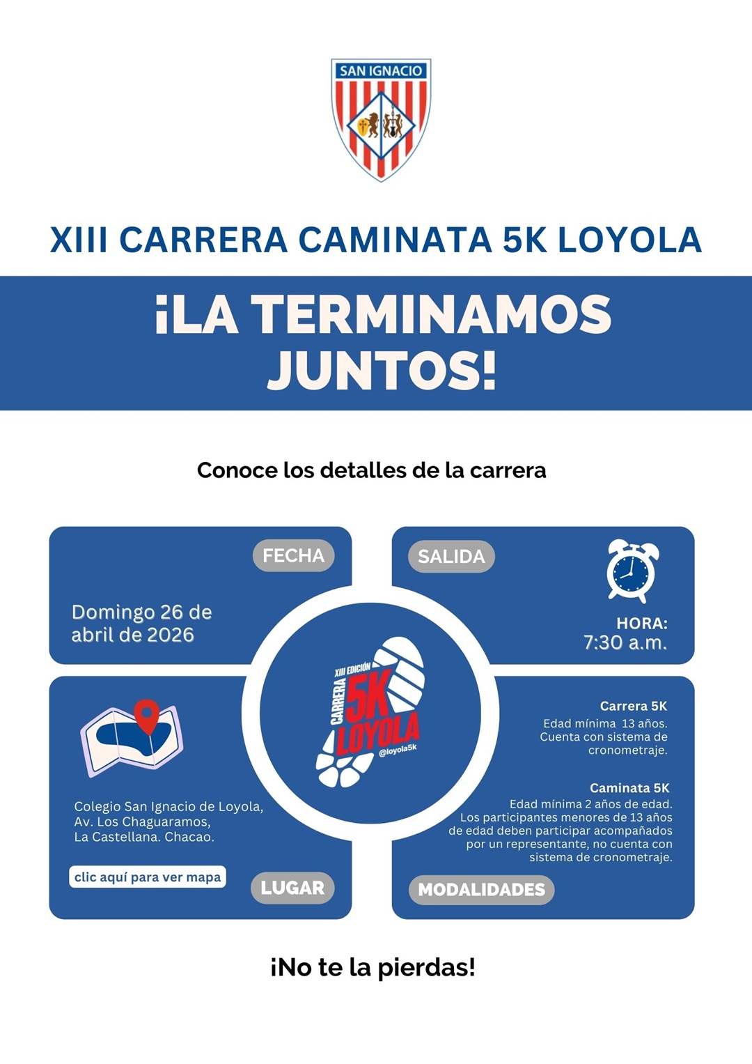 1. Hipereventos, C.A. organiza el 26 de abril de 2026 la XIII Carrera Caminata 5K Loyola, con salida a las 7:30 a.m.